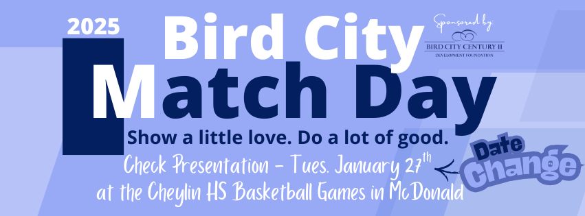 Because of your generosity, local donations were matched by BCCII to do even more good right here at home. We’re excited to celebrate that impact with a Bird City Match Day check presentation during the Cheylin High School basketball games in McDonald.